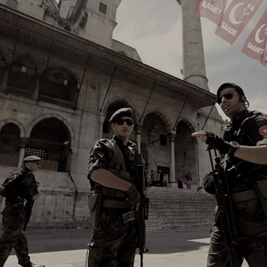 Featured image: Members of the Turkish police counterattack team responsible for guarding President Recep Tayyip Erdogan stand in front of a mosque as Erdogan departs, following Friday prayers in Istanbul, May 29, 2015. (photo by REUTERS/Murad Sezer)